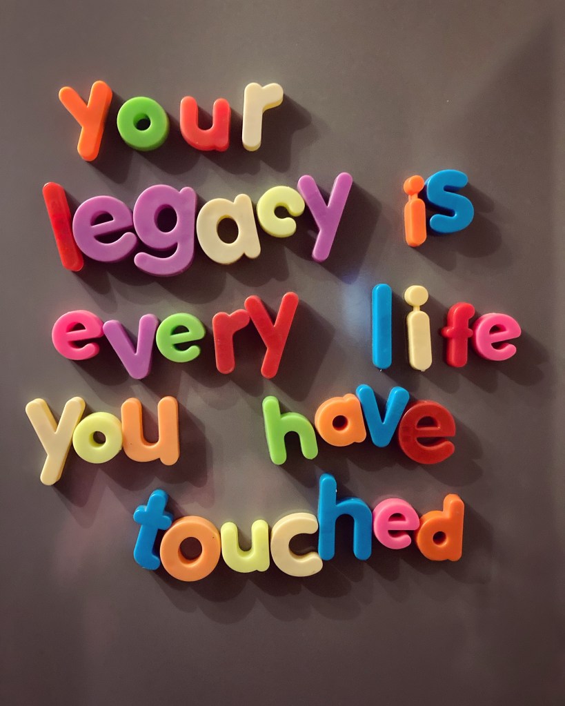 As we left the hospital my son and I shared memories of how incredible she is and how lucky we are to learn from her. The wonderful thing about her is that she probably has no idea how much she means to us, nor how much she has taught and continues to teach us. Perhaps today someone shared something with you, made you feel seen or heard or maybe you interacted with someone and your words touched them. I think having a legacy is often overrated and often over thought when most days we all impact each other without often realising it, I like to think this is our invisible legacy that day by day we add to like a patchwork quilt. Make sure the stitching you give to others enhances them for the better.